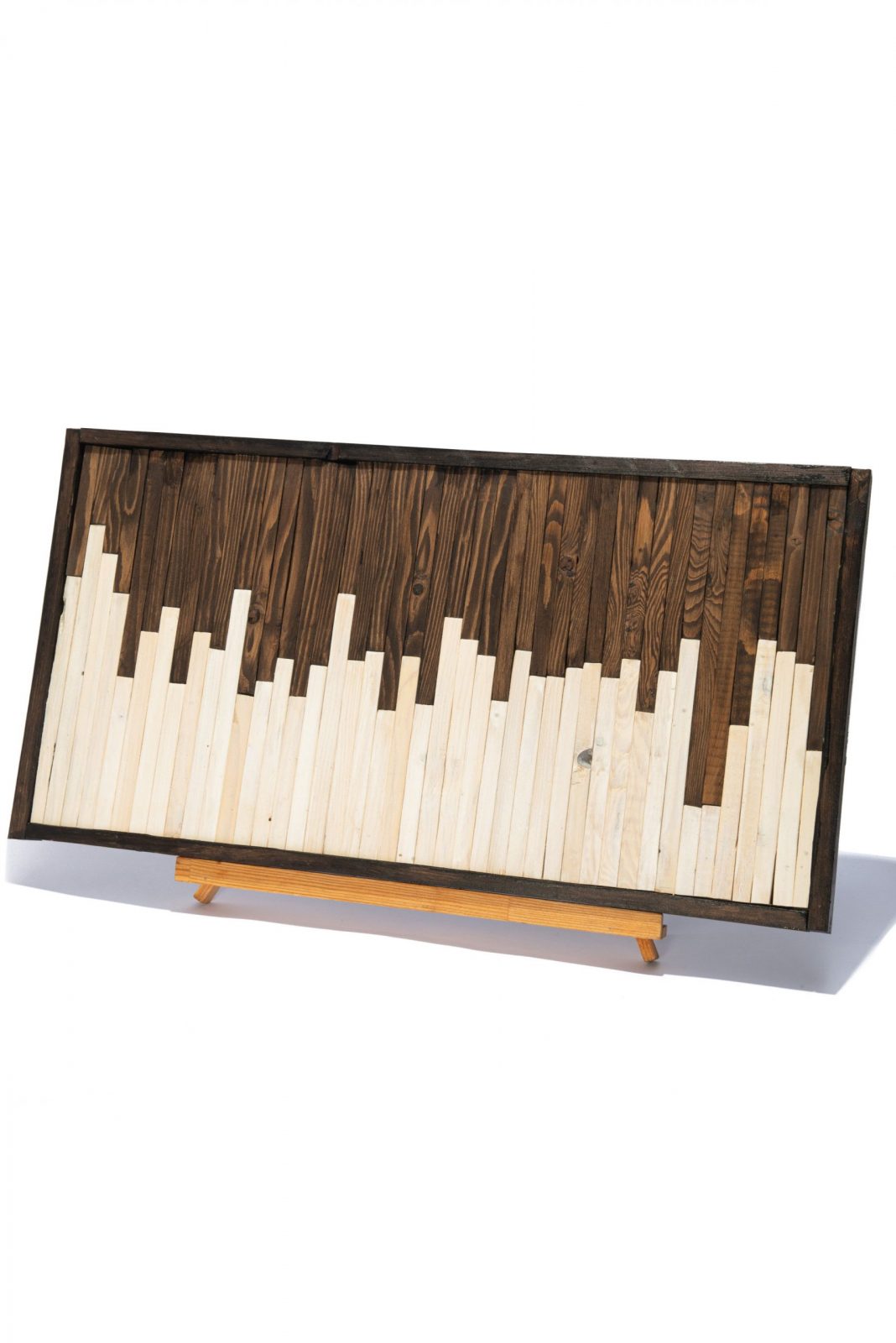 Tablou art din lemn cu prinderi metalice realizat si pictat manual.